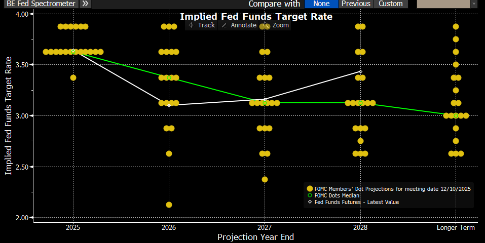 But what about those dots showing a median expectation of only one further rate cut throughout all of 2026? We also learned this week that we need to heavily discount the dots.